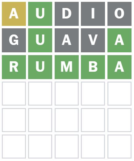 Here is how I managed to solve Wordle 1335 in three guesses today. I guessed the word ‘AUDIO’ first, which is my usual starter word.