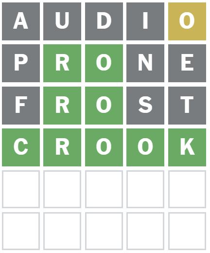 I guessed the word ‘FROST’ next, but unfortunately, no new letters were revealed to be in the answer today.