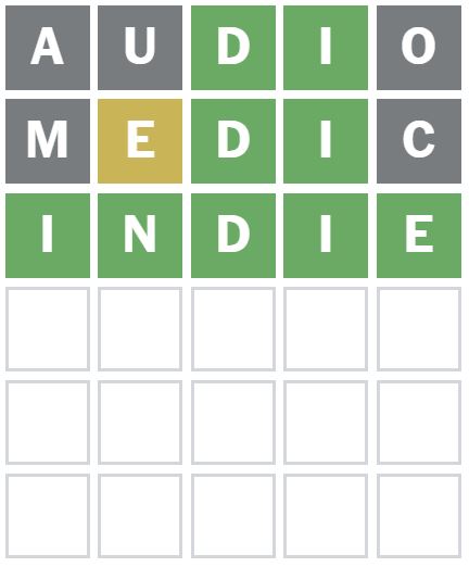 Here is how I managed to solve Wordle 1340 in three guesses today. I guessed the word ‘AUDIO’ first, which is my usual starter word.