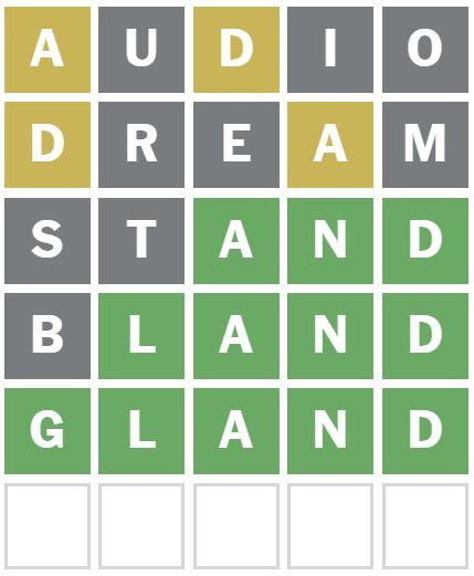 I decided to guess the word ‘BLAND’ next, which placed the L correctly as the second letter.