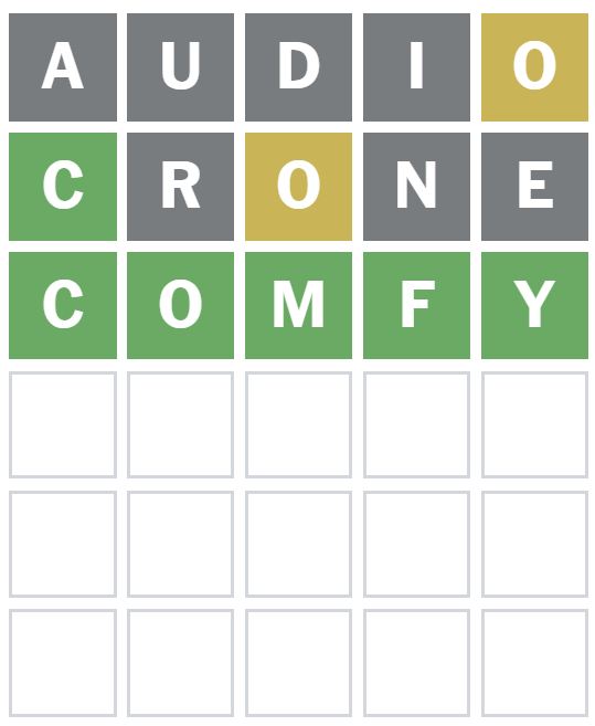 Here is how I managed to solve Wordle 1467 in three guesses today. I guessed the word ‘AUDIO’ first, which is my usual starter word.