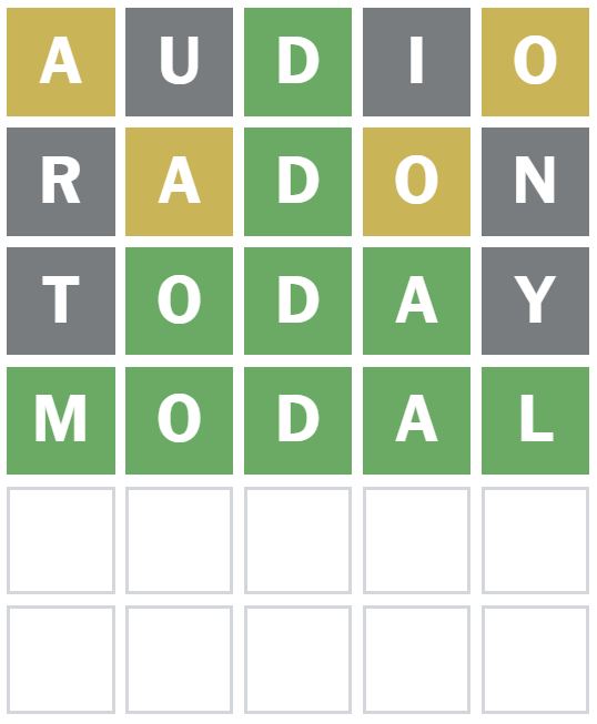 ‘TODAY’ was the next word I guessed, which placed the O and A correctly, leaving the first and last letters to be guessed.