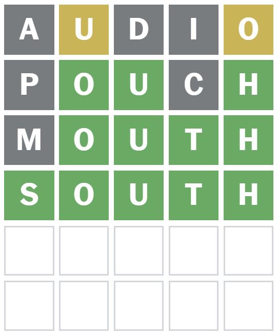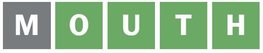 This left the first and fourth letters to be guessed, and so I guessed ‘MOUTH’ next.