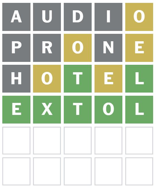 Here is how I managed to solve Wordle 1524 in four guesses today. I guessed the word ‘AUDIO’ first, which is my usual starter word.