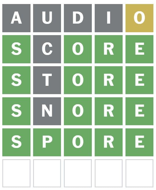This was a great word to guess as it placed the S, O, R and E all in the correct positions.