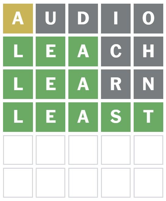 The last two letters were left to be guessed and the next word I decided to guess was ‘LEARN’.