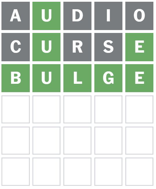 Here is how I managed to solve Wordle 1540 in three guesses today. I guessed the word ‘AUDIO’ first, which is my usual starter word.