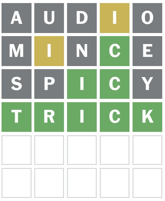 Here is how I managed to solve Wordle 1543 in four guesses today. I guessed the word ‘AUDIO’ first, which is my usual starter word.
