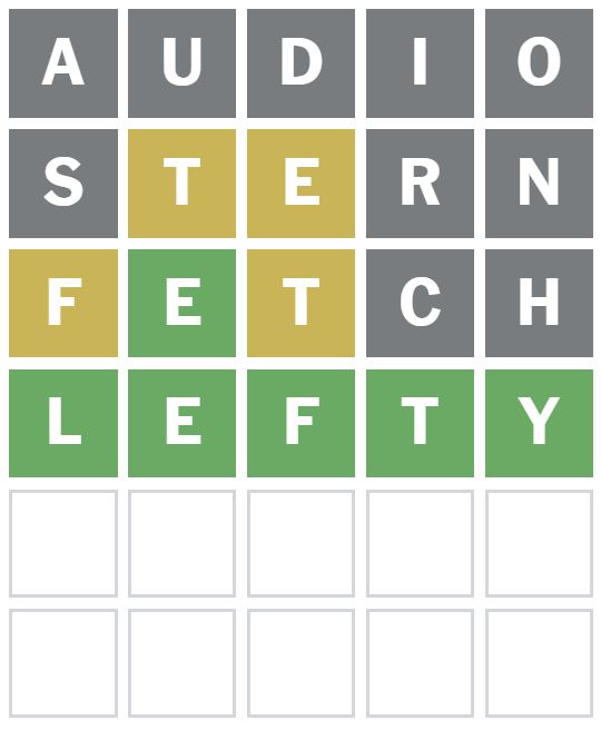 Here is how I managed to solve Wordle 1550 in four guesses today. I guessed the word ‘AUDIO’ first, which is my usual starter word.