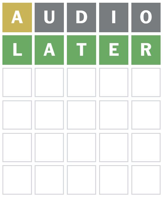 Here is how I managed to solve Wordle 1553 in only two guesses today! I guessed the word ‘AUDIO’ first, which is my usual starter word.