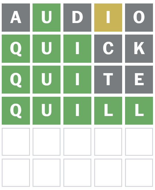 I guessed the word ‘QUICK’ next, which placed the Q and I correctly.