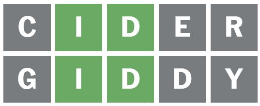 I guessed the word ‘CIDER’ next as it puts the I in a different position and has an E in it.