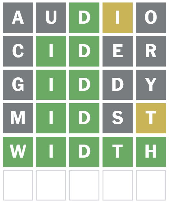 This word placed the D correctly as the third letter and also showed me there is an I in the answer, but it hasn’t been correctly placed.