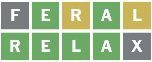 I guessed the word ‘FERAL’ next, which placed the E correctly as the second letter and showed me there is an L in the Wordle answer today.