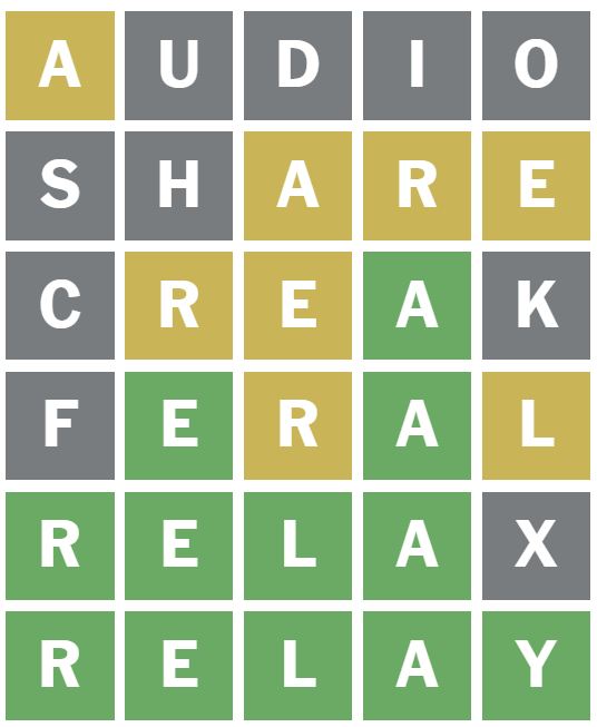 ‘RELAX’ was the next word I guessed, which placed the R, E and L all in the correct positions.