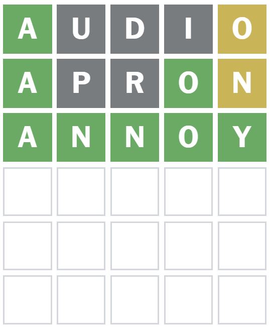 Here is how I managed to solve Wordle 1572 in three guesses today. I guessed the word ‘AUDIO’ first, which is my usual starter word.