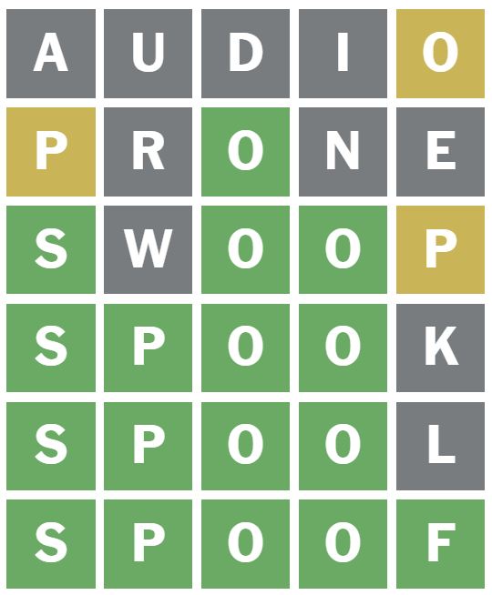 I guessed the words ‘SPOOK’ and ‘SPOOL’ next, neither of which are the Wordle answer today.
