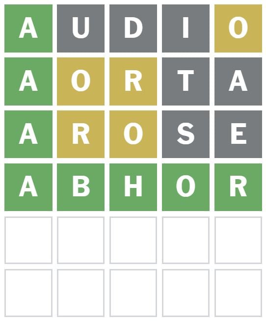 ‘AROSE’ was the next word I guessed, which unfortunately did not reveal any new letters in the Wordle answer today.
