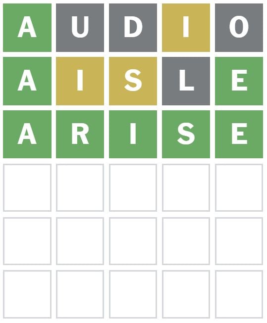 Here is how I managed to solve Wordle 1603 in three guesses today. I guessed the word ‘AUDIO’ first, which is my usual starter word.