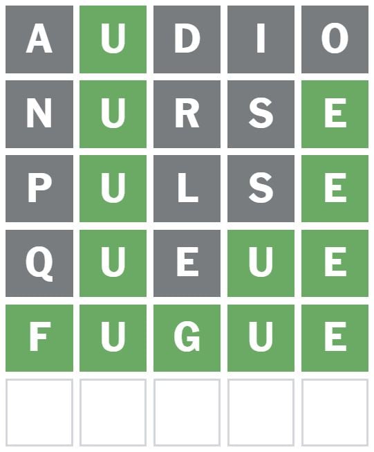 I then guessed the word ‘QUEUE’ next, which placed the other U correctly.