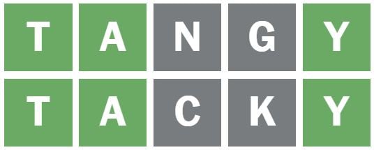 I guessed the word ‘TANGY’ next, which placed the T, A and Y correctly.
