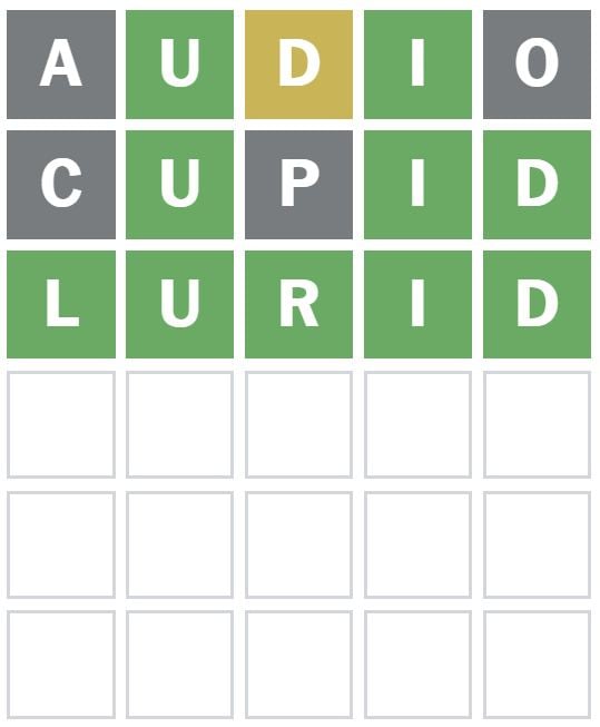 This was a great word to guess as it placed the U and I correctly and showed me there is a D in the Wordle answer today.
