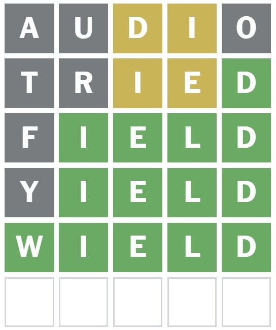 This leaves the first letter to be guessed and I went with the word ‘YIELD’ next. Unfortunately, this is not the Wordle answer today.