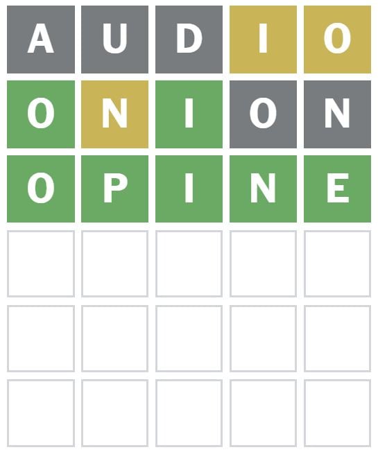 The O and I were correctly places as the first and third letters and it also showed me there is an N in the Wordle answer today.