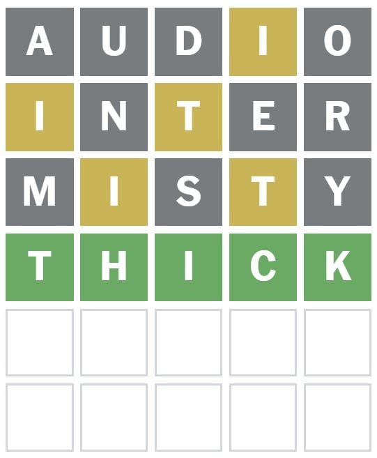 I guessed the word ‘MISTY’ next, but no new letters were revealed to be in the answer today, nor were the other letters correctly placed.