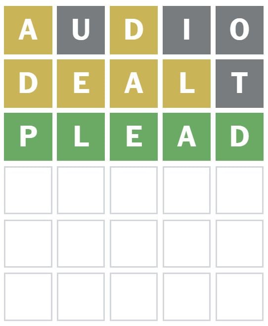 I guessed the word ‘DEALT’ next as it puts the known letters in different positions and has an E in it.