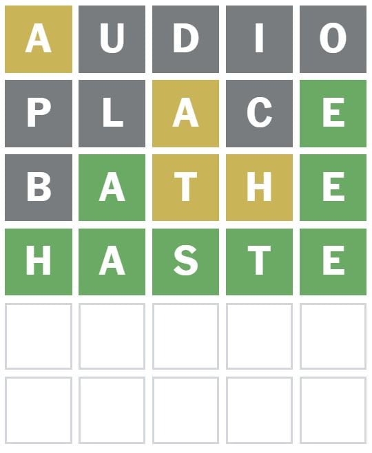 The E was correctly placed as the last letter with this guess, but no other letters were revealed to be in the Wordle answer today.