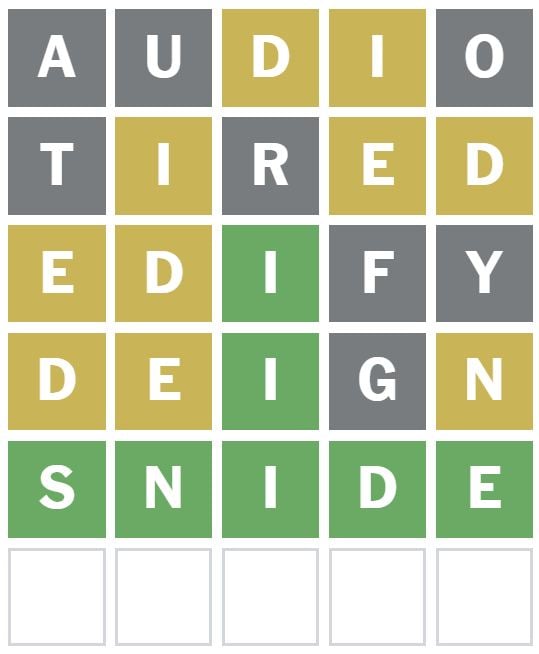 No letters were correctly placed with this guess, but it did show me there is an E in the Wordle answer today.