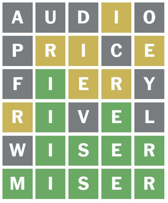 R has to be the last letter, so I guessed the word ‘WISER’ next.