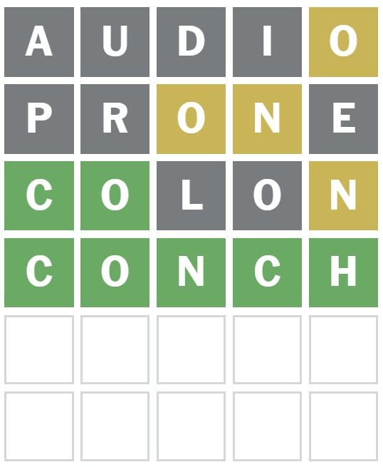 Here is how I managed to solve Wordle 1647 in four guesses today. I guessed the word ‘AUDIO’ first, which is my usual starter word.