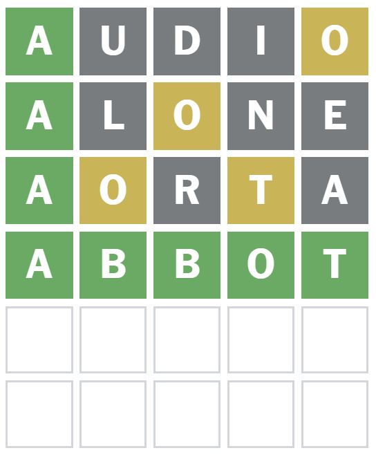 Here is how I managed to solve Wordle 1653 in four guesses today. I guessed the word ‘AUDIO’ first, which is my usual starter word.