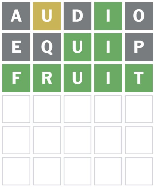 Here is how I managed to solve Wordle 1654 in three guesses today. I guessed the word ‘AUDIO’ first, which is my usual starter word.