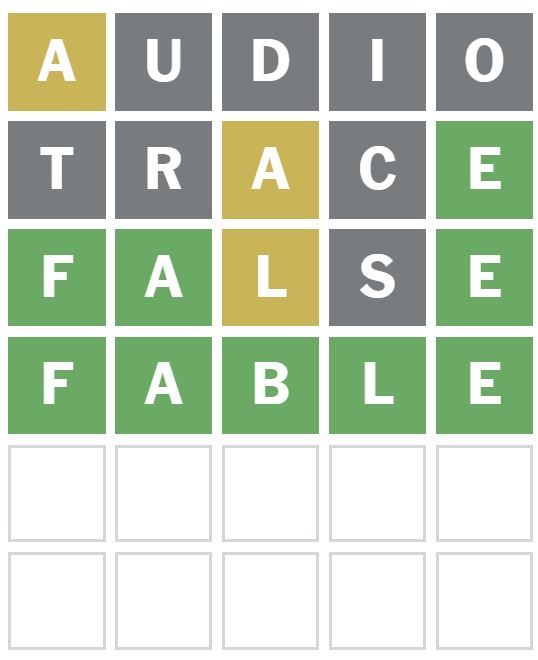 ‘FALSE’ was the next word I guessed, which placed the F and A correctly and showed me there is an L in the Wordle answer today.
