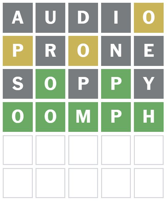 No letters were correctly placed with this guess, but it did show me there is a P in the Wordle answer today.