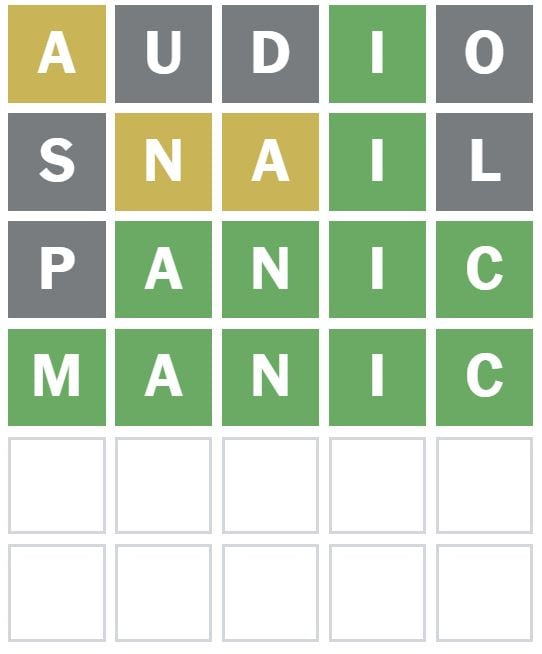 ‘PANIC’ was the next word I guessed as it puts the known letters in different positions.