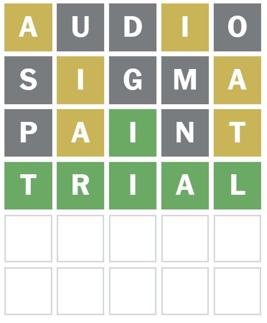 I then wanted to guess a word that puts the vowels next to each other, so I guessed the word ‘PAINT’ next.