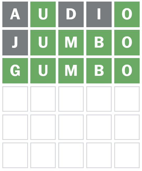 Here is how I managed to solve Wordle 1669 in three guesses today. I guessed the word ‘AUDIO’ first, which is my usual starter word.