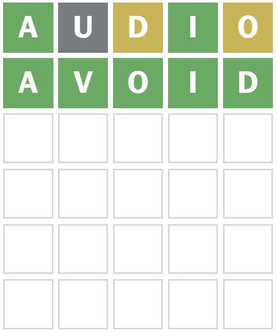 Here is how I managed to solve Wordle 1670 in only two guesses today. I guessed the word ‘AUDIO’ first, which is my usual starter word.