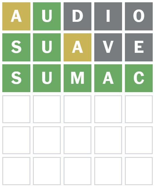 Here is how I managed to solve Wordle 1674 in three guesses today. I guessed the word ‘AUDIO’ first, which is my usual starter word.