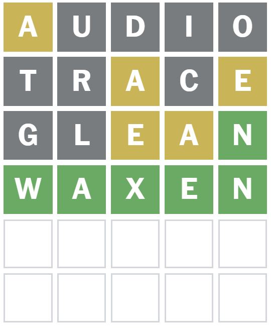 No letters were correctly placed with this guess, but it did show me there is an E in the Wordle answer today.