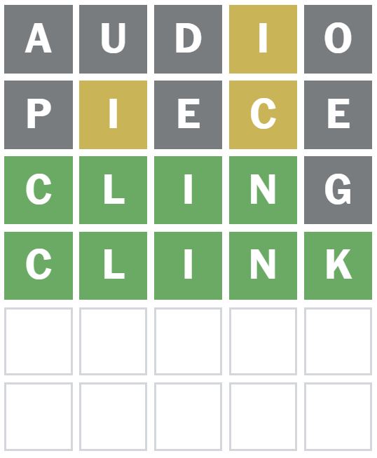 This was a great word to guess as it placed the C, L, I and N all in the correct positions.