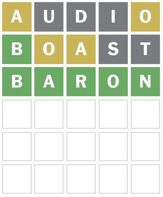 Here is how I managed to solve Wordle 1679 in three guesses today. I guessed the word ‘AUDIO’ first, which is my usual starter word.