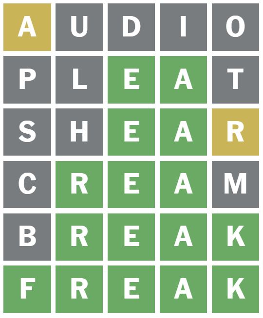 ‘SHEAR’ was the next word I guessed as it uses different letters than the ones already guessed.
