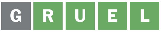 ‘GRUEL’ was the next word I guessed, which placed the E and L correctly, leaving the first letter to be guessed.