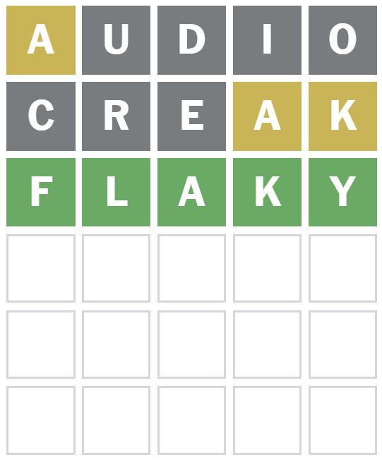 Here is how I managed to solve Wordle 1685 in three guesses today. I guessed the word ‘AUDIO’ first, which is my usual starter word.