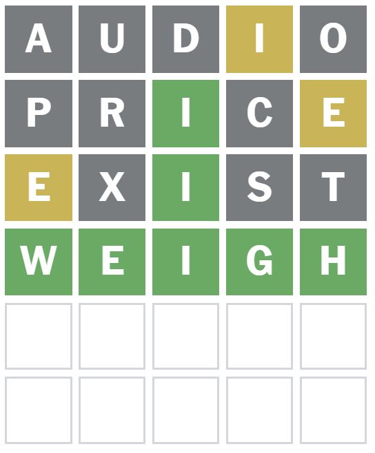 Here is how I managed to solve Wordle 1690 in four guesses today. I guessed the word ‘AUDIO’ first, which is my usual starter word.